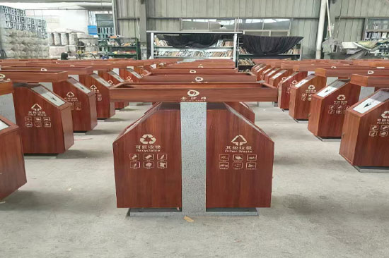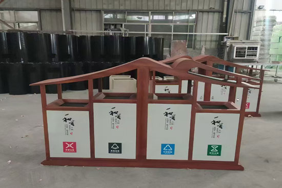 整體設計既體現了中國傳統文化的韻味,又不失現代感和實用性,是戶外環境中的一個亮點。這樣的垃圾桶不僅能夠有效收集垃圾,保持環境整潔,還能成為城市中一道亮麗的風景線,提升公共空間的文化氛圍和藝術品味。
