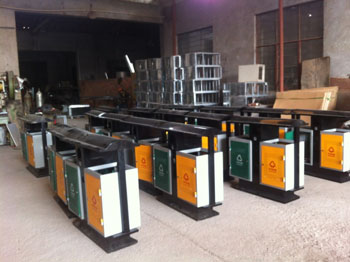 公司擁有剪切機、折彎機、氬弧焊機、等離子切割機等鈑金設備及設施,主要生產室內戶外不銹鋼金屬垃圾桶。